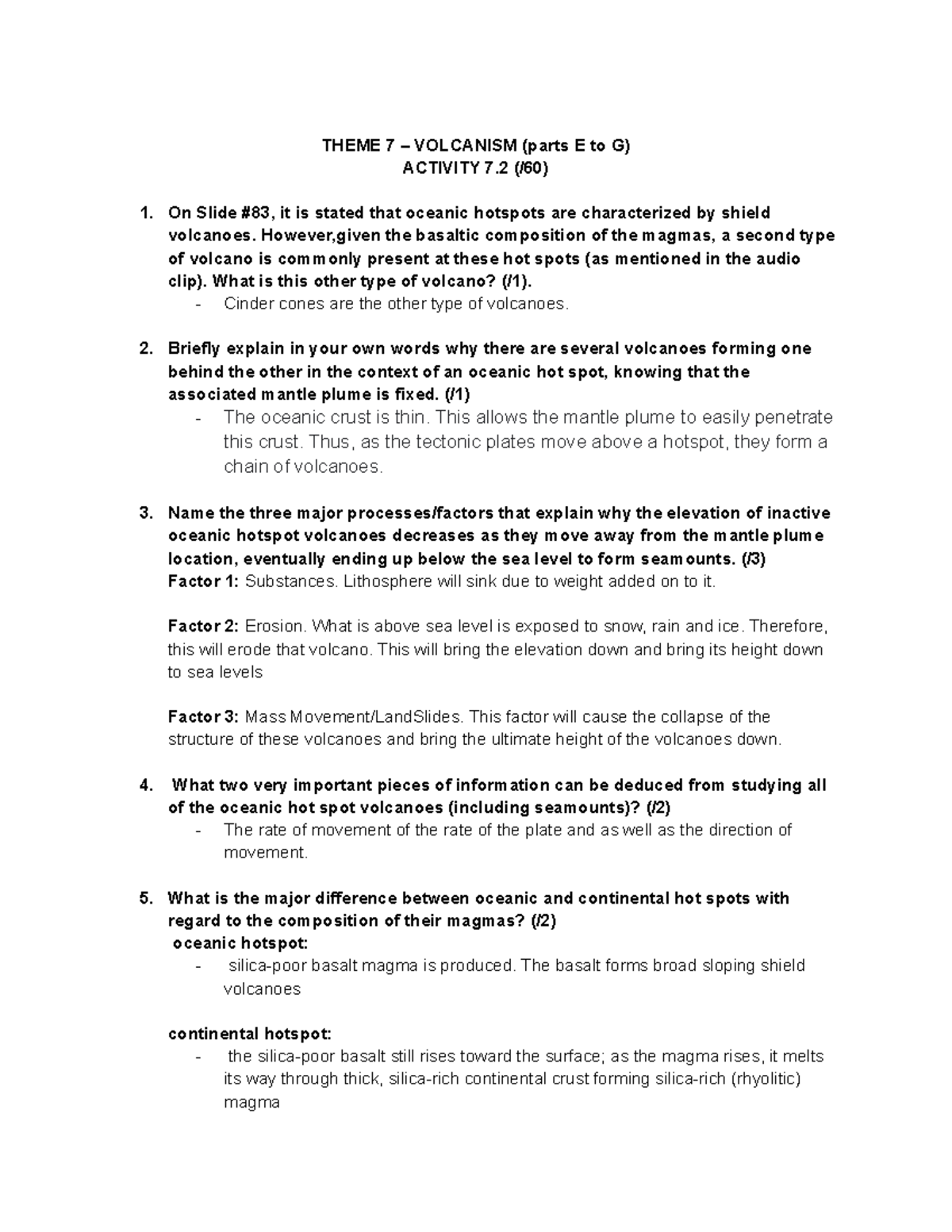 GEO1301 Activity 7 - assignment - THEME 7 – VOLCANISM (parts E to G ...