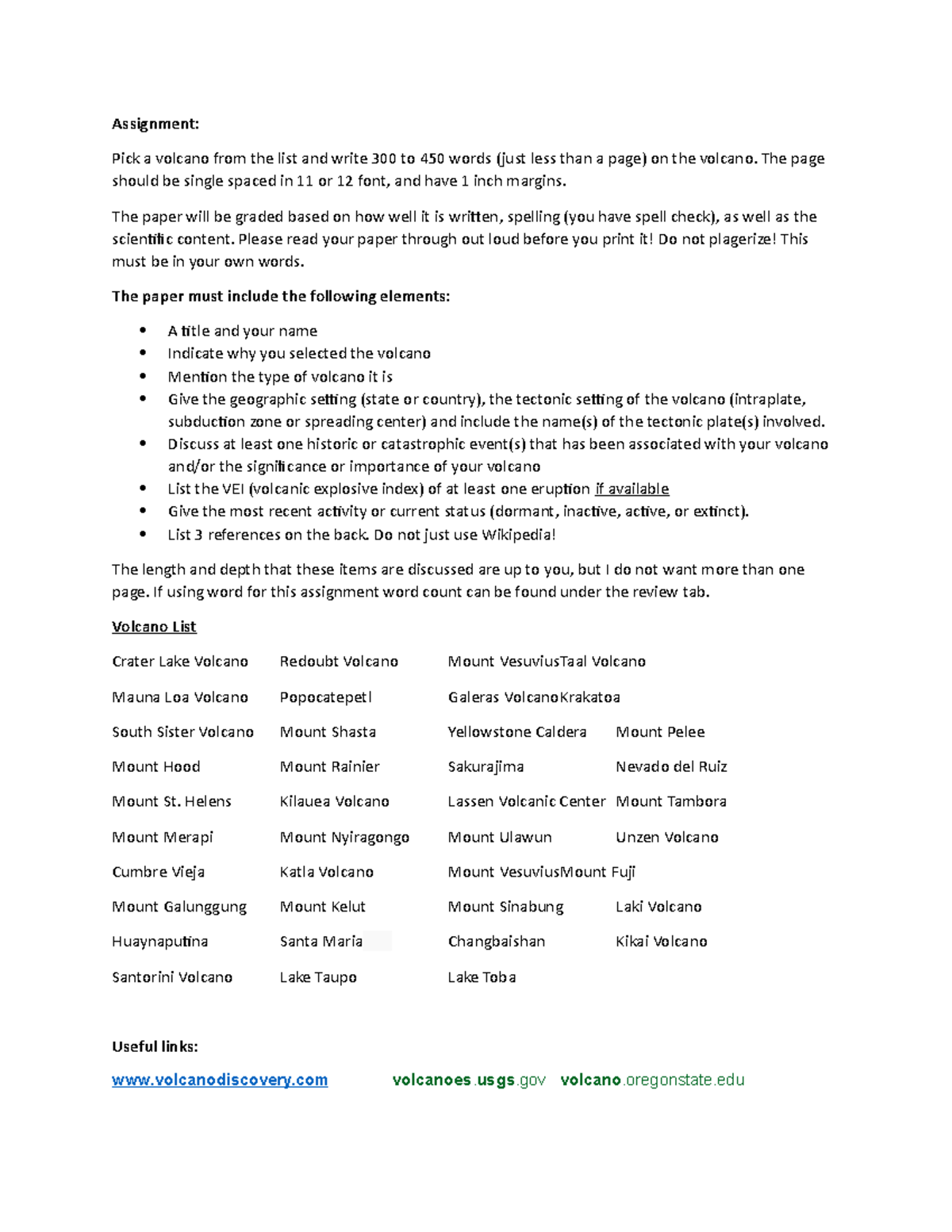Volcano Assignment Requirements - Assignment: Pick a volcano from the ...