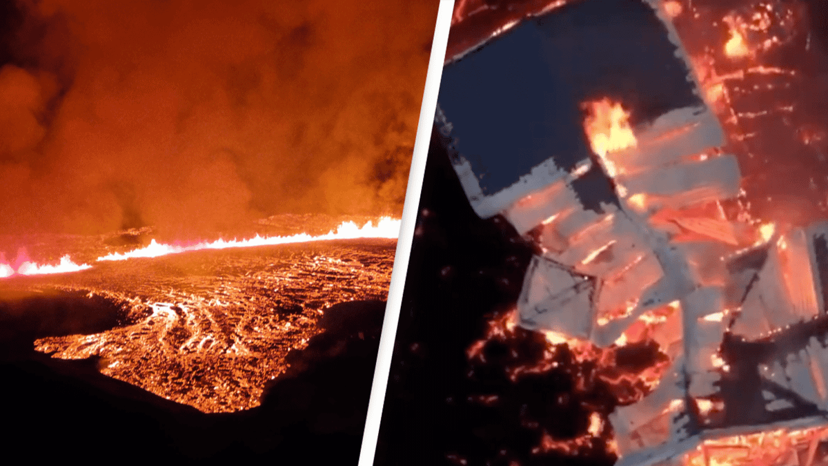 Terrifying moment fast-moving lava stream swallows houses after ...