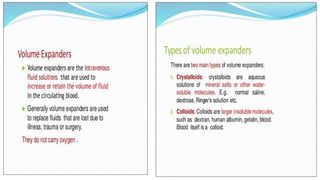 Plasma volume expanders and cardiovascular drugs used in | PPTX