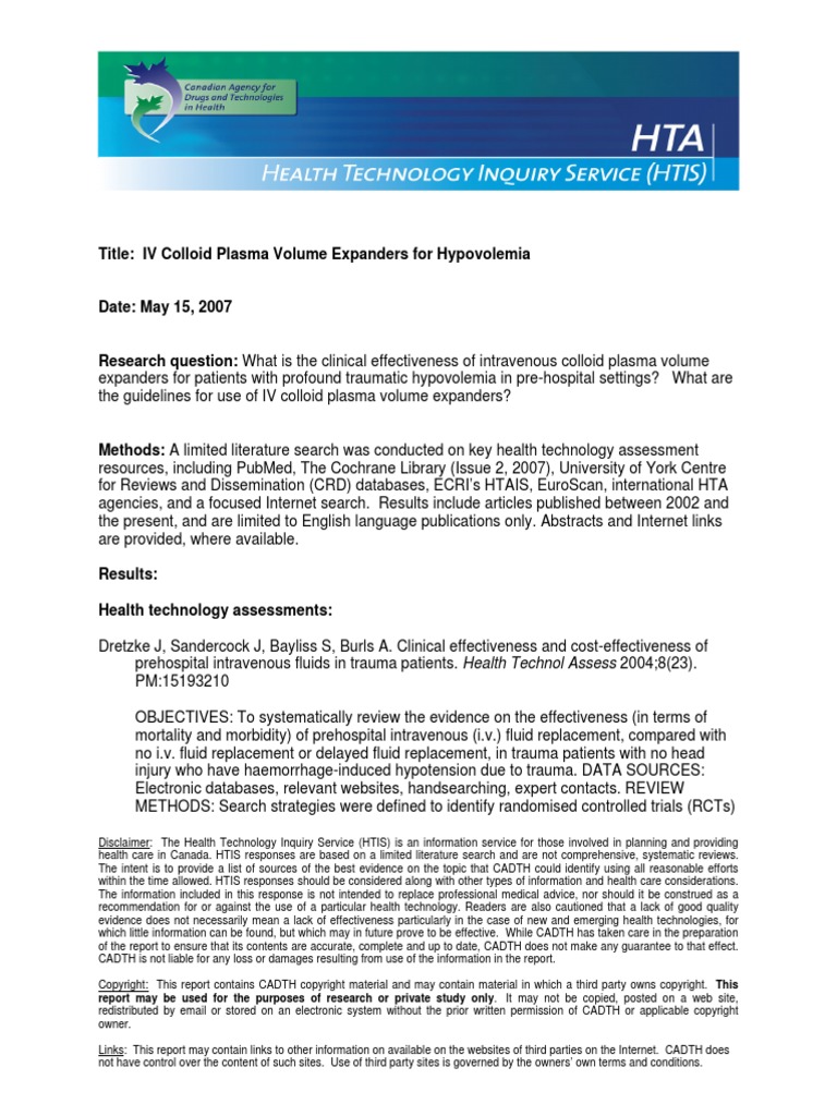 IV Colloid Plasma Volume Expanders For Hypovolemia | PDF | Evidence ...