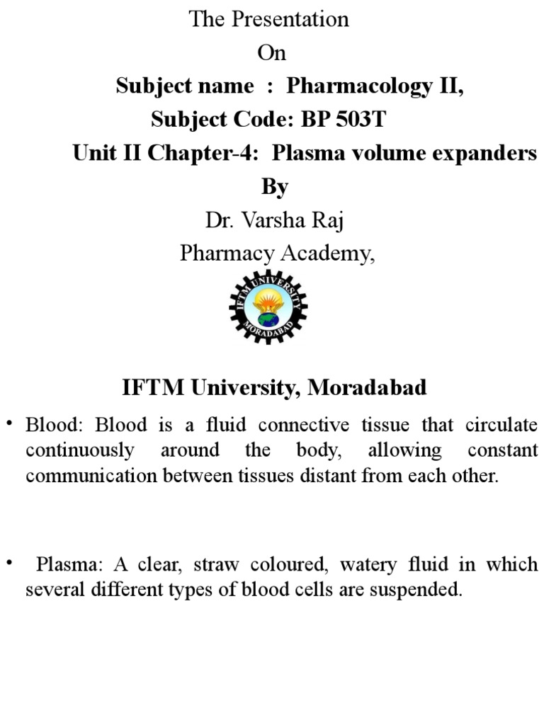 Blood and Plasma Volume Expanders..pharmacology | Medical Specialties ...