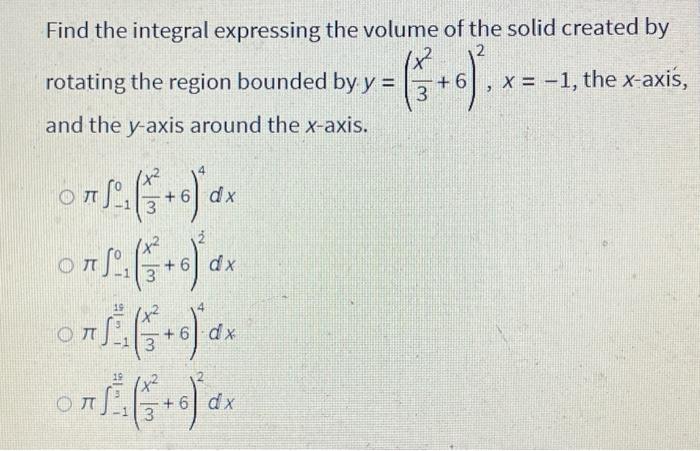 Solved 2) The integral that gives the volume of the solid | Chegg.com