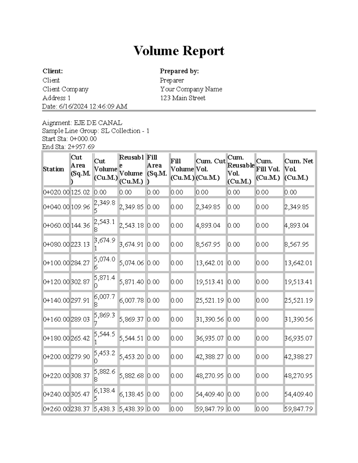 Volume Report Detailing Cut, Fill, and Cumulative Volumes by Station ...