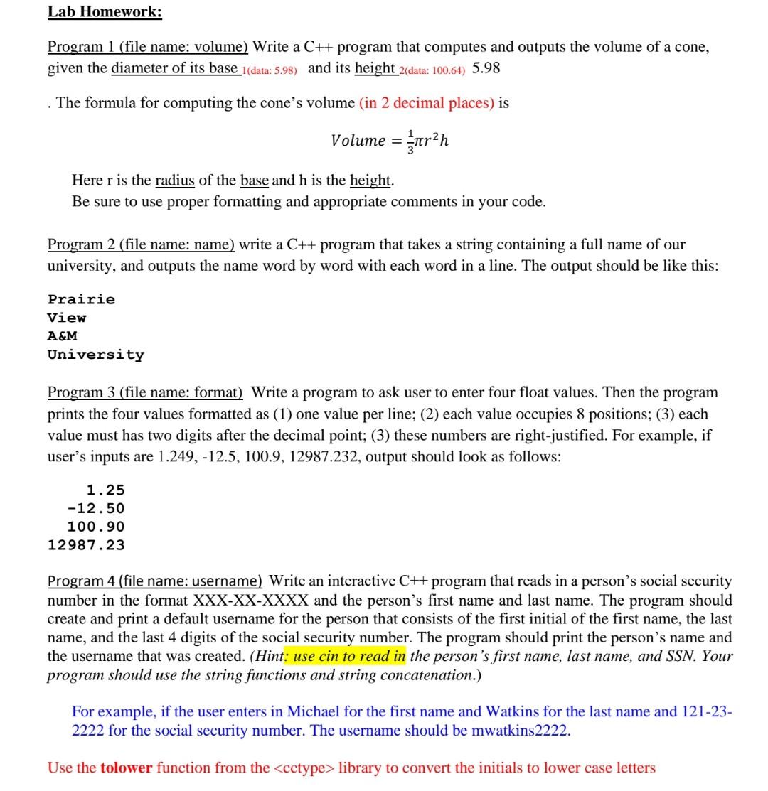 Lab Homework: Program 1 (file name: volume) Write a | Chegg.com