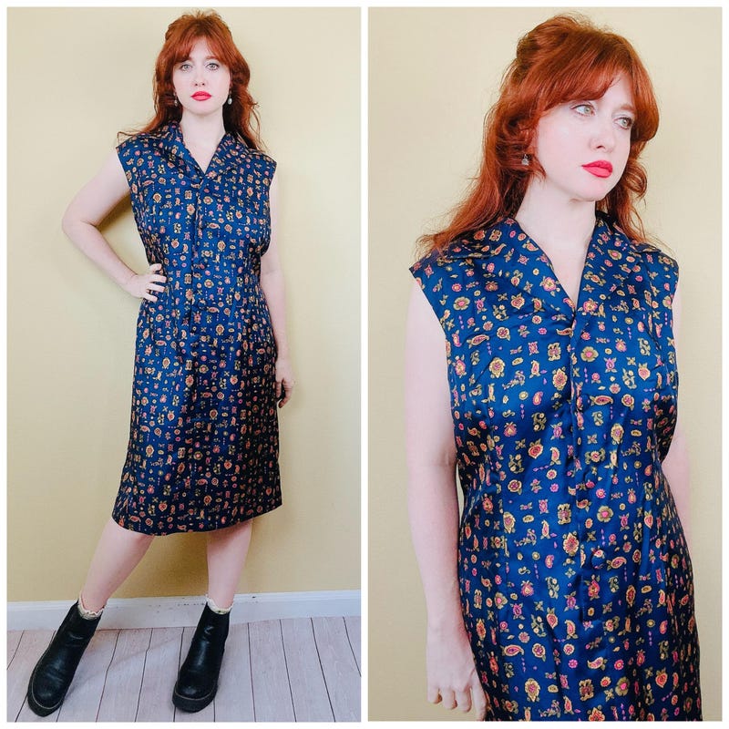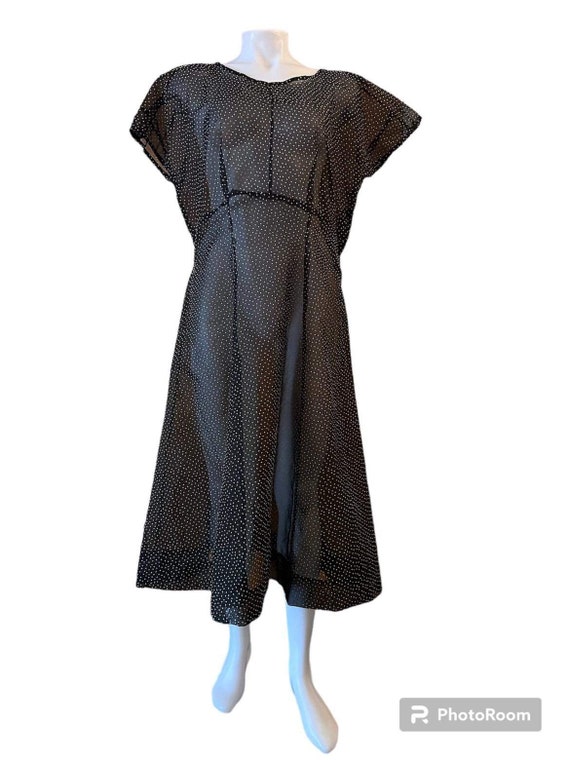 Vintage VOLUP size dress 1940s dark blue sheer nylon… - Gem