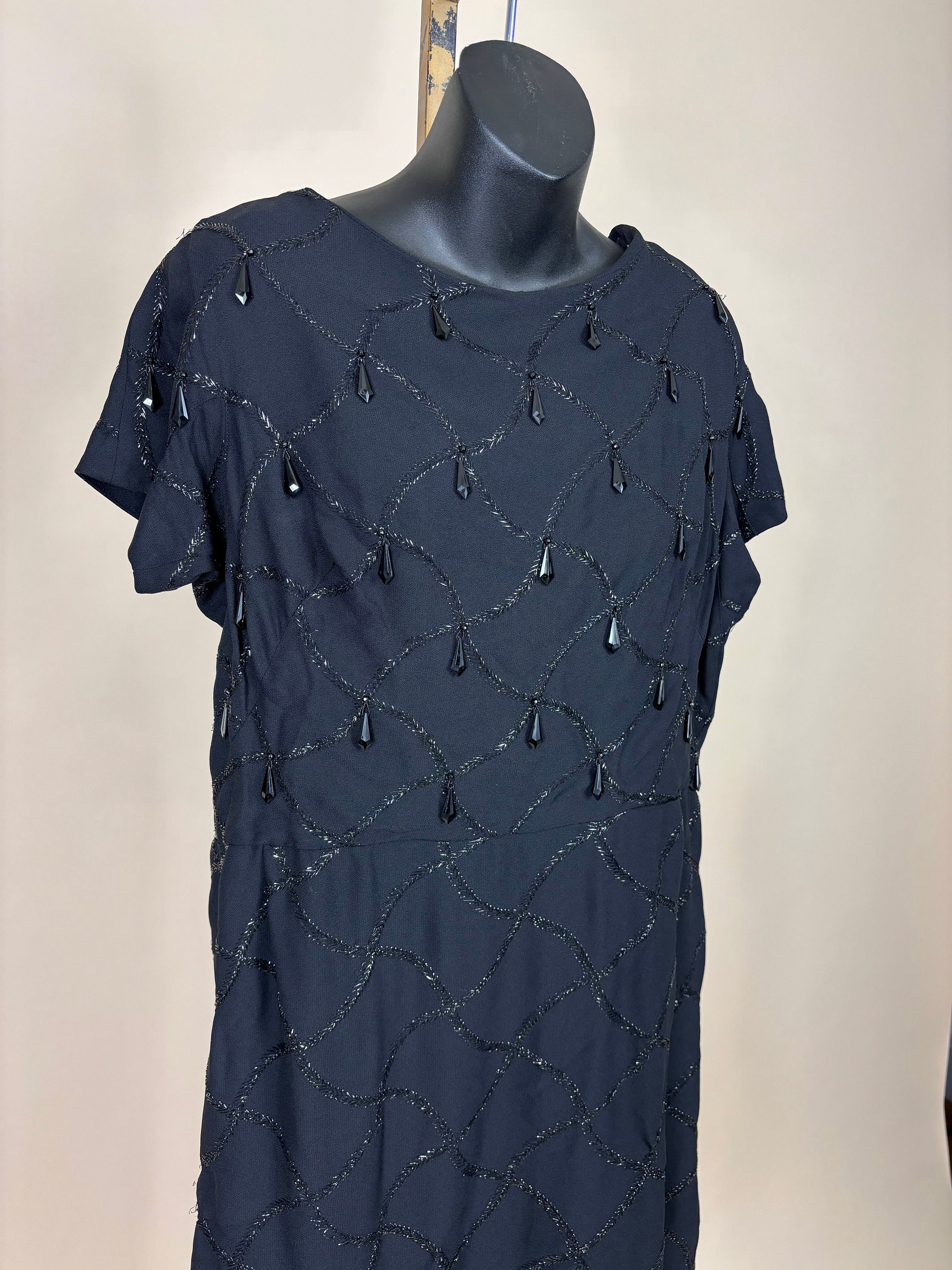 L 50s Beaded Volup LBD Black Party Evening Cocktail Dress - Etsy