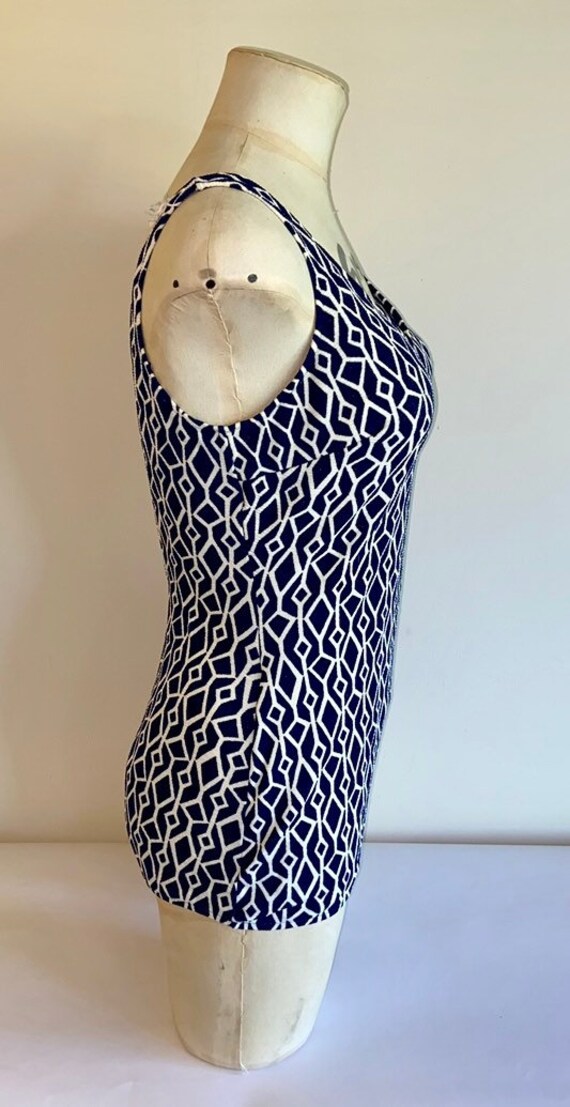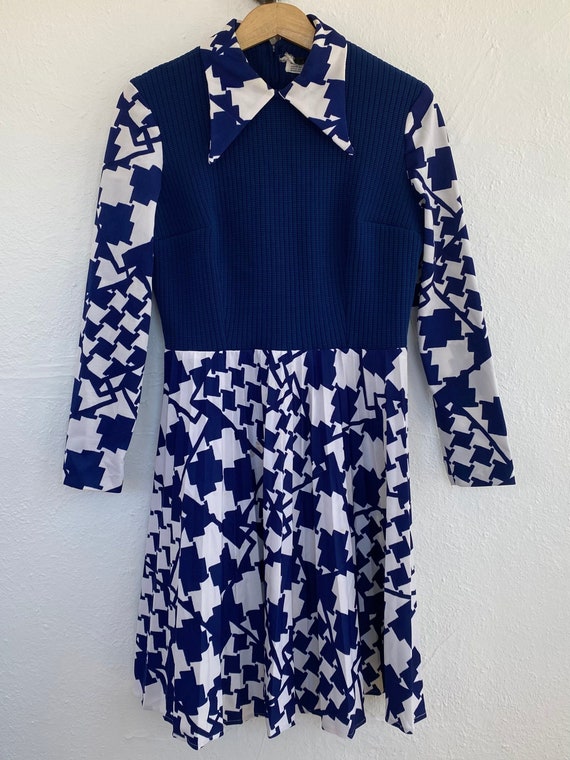 Plus Size Volup 1960s Blue and White Geometric Graphi… - Gem