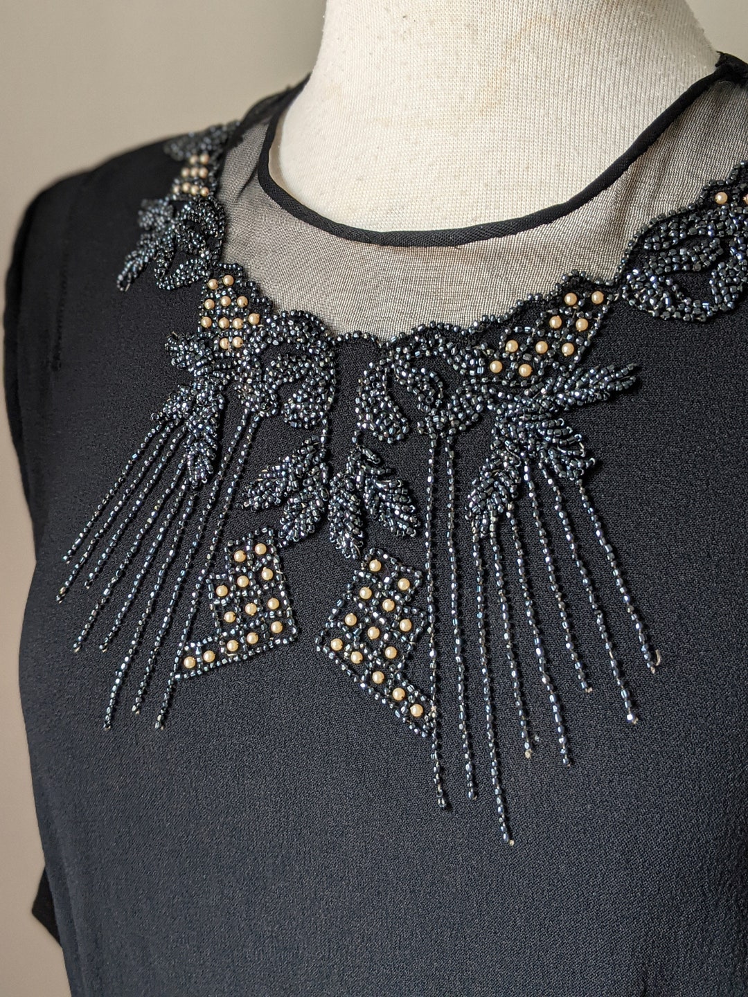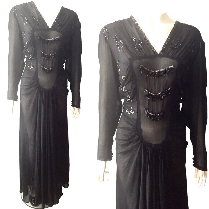 Volup Vintage 1940s Beaded Illusion Mesh Black Cocktail Dress - Etsy