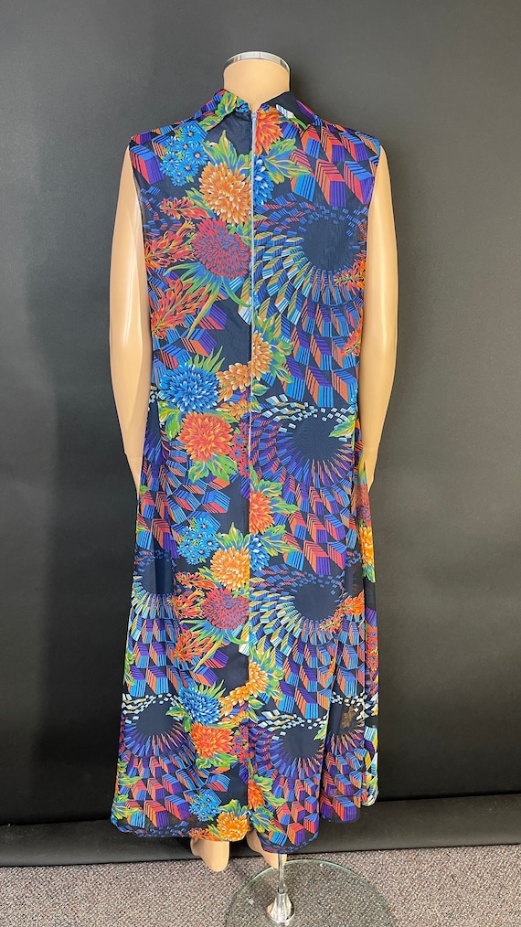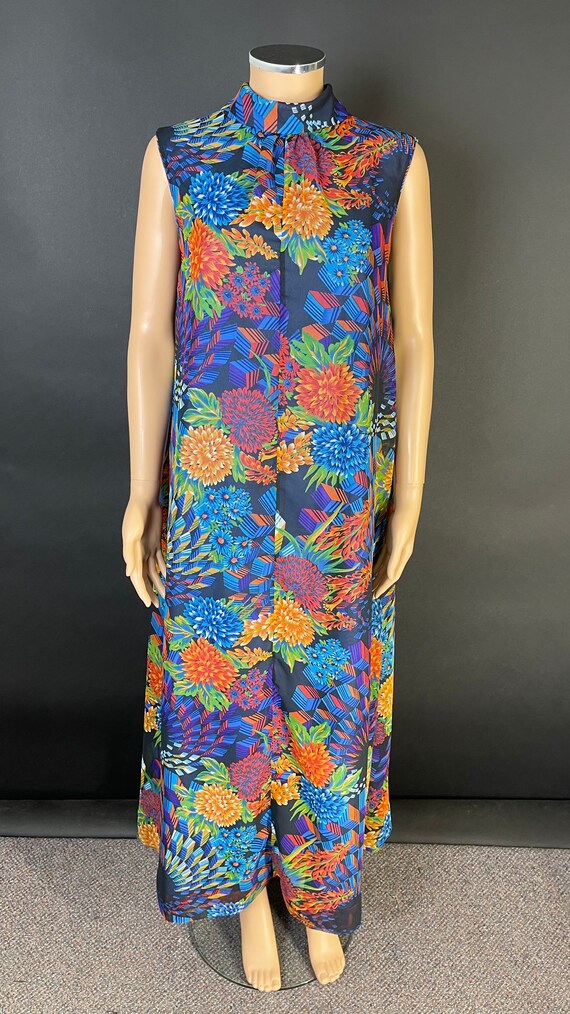 1960s Floral Print Maxi Dress, Volup A-Line Chiffon (… - Gem