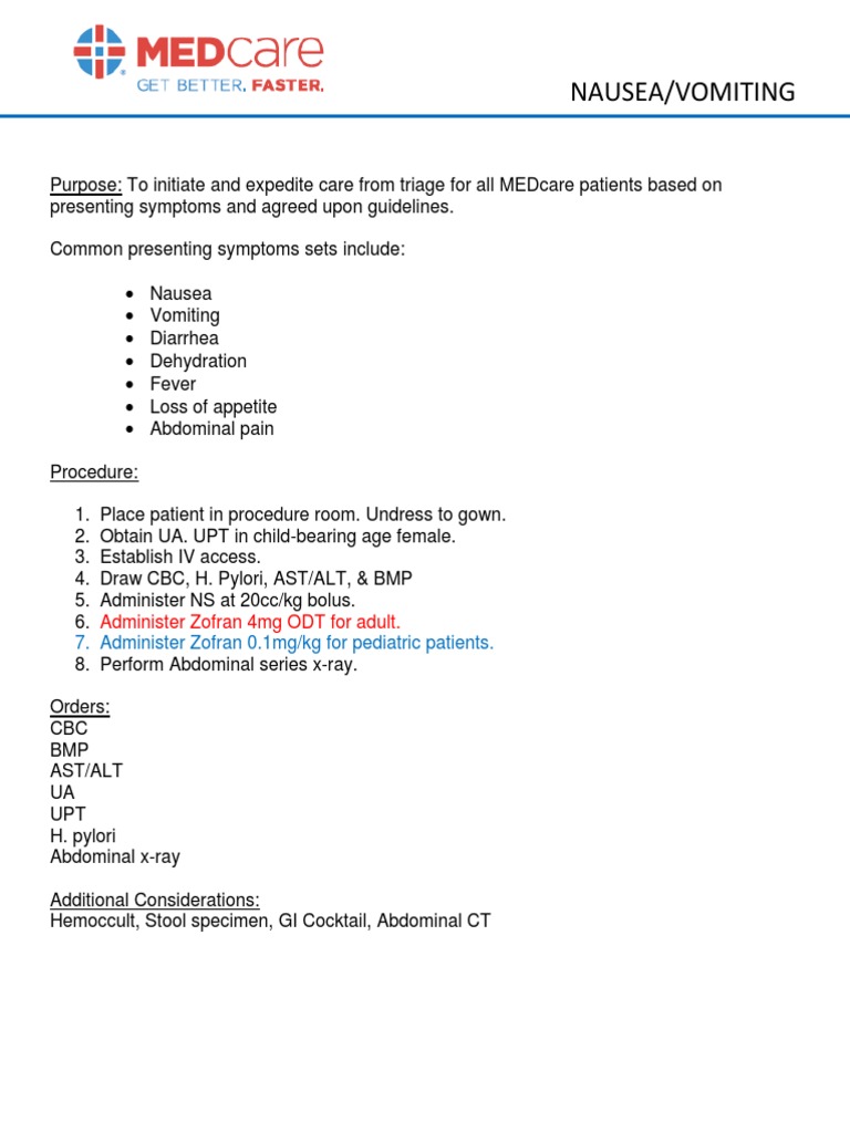 Standing Orders Nausea Vomiting Draft | PDF | Self-Improvement