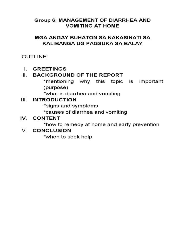 DRAFT - Group 6 - Management of Diarrhea and Vomiting at Home | PDF