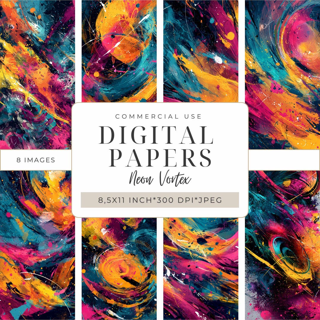 Neon Vortex Digital Papers Pack – Electric Abstract Backgrounds for ...