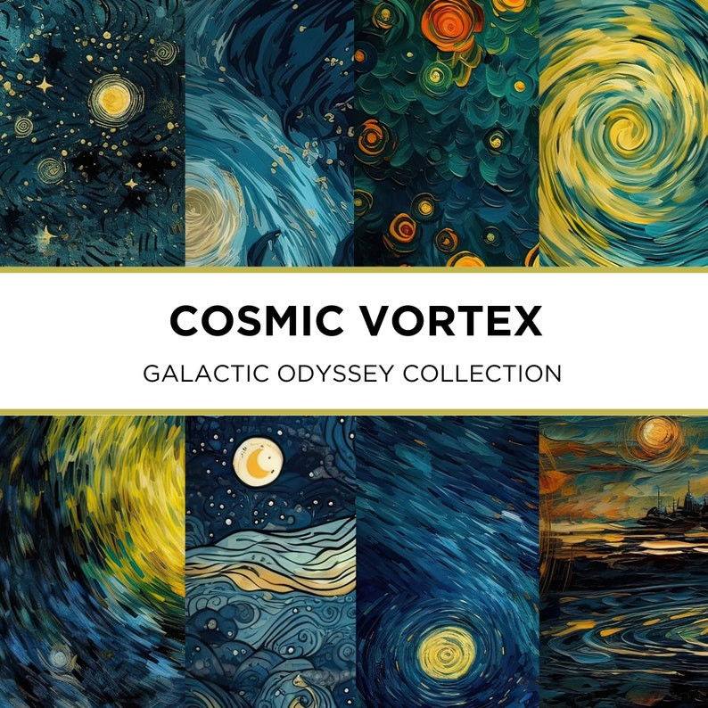 Cosmic Vortex Digital Paper - Post-impressionist Galaxy Collection - 12 ...