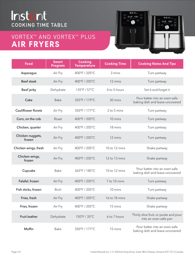 Instant Vortex Air Fryer Cook Times | Vortex Recipes | Air fryer ...