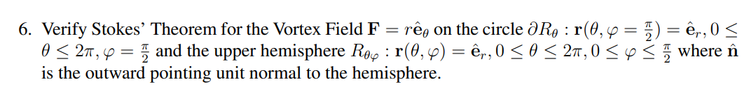 Solved = : 6. Verify Stokes' Theorem for the Vortex Field F | Chegg.com