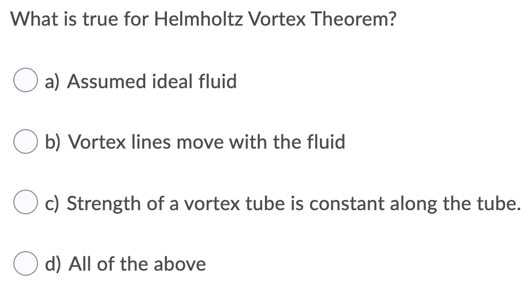 Solved What is true for Helmholtz Vortex Theorem? a) Assumed | Chegg.com