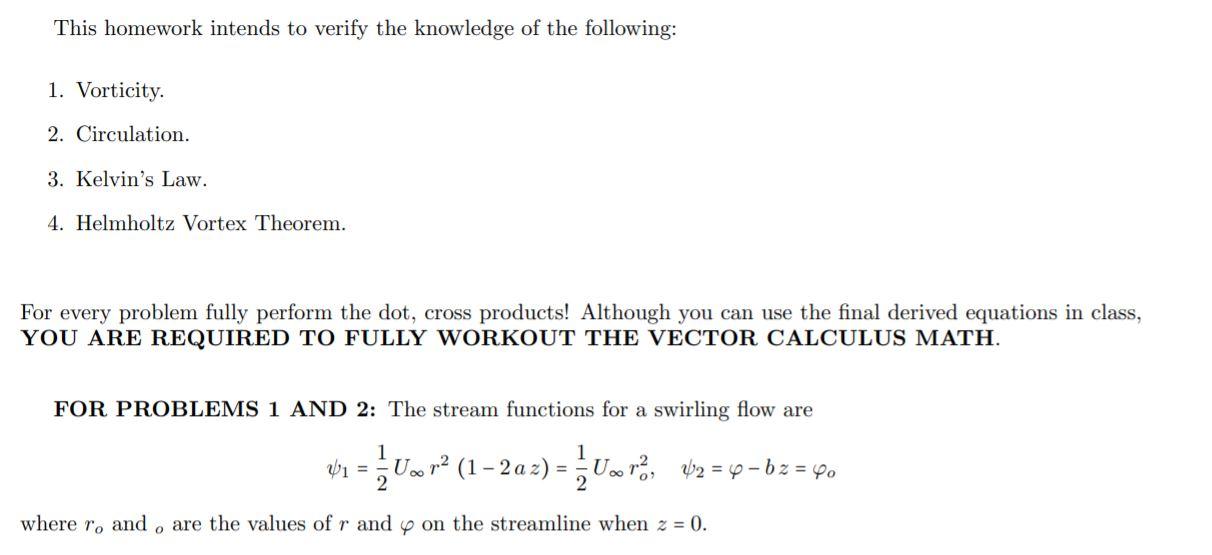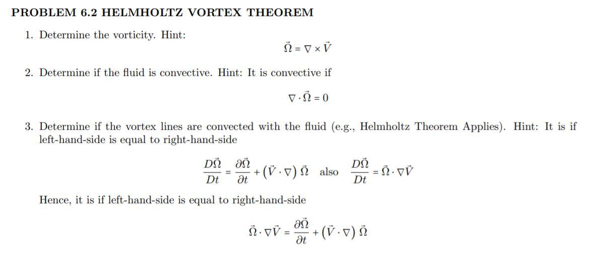 PROBLEM 6.2 HELMHOLTZ VORTEX THEOREM 1. Determine the | Chegg.com