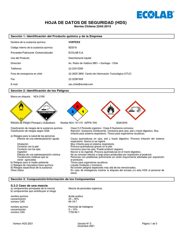 Hoja de Seguridad Vortexx Desinfectante | PDF | Agua | Naturaleza