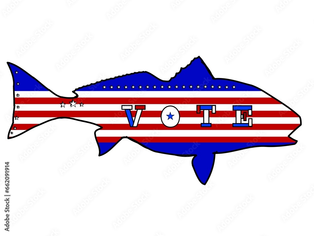 Redfish or Red Drum Fish with American flag look and red, white and ...