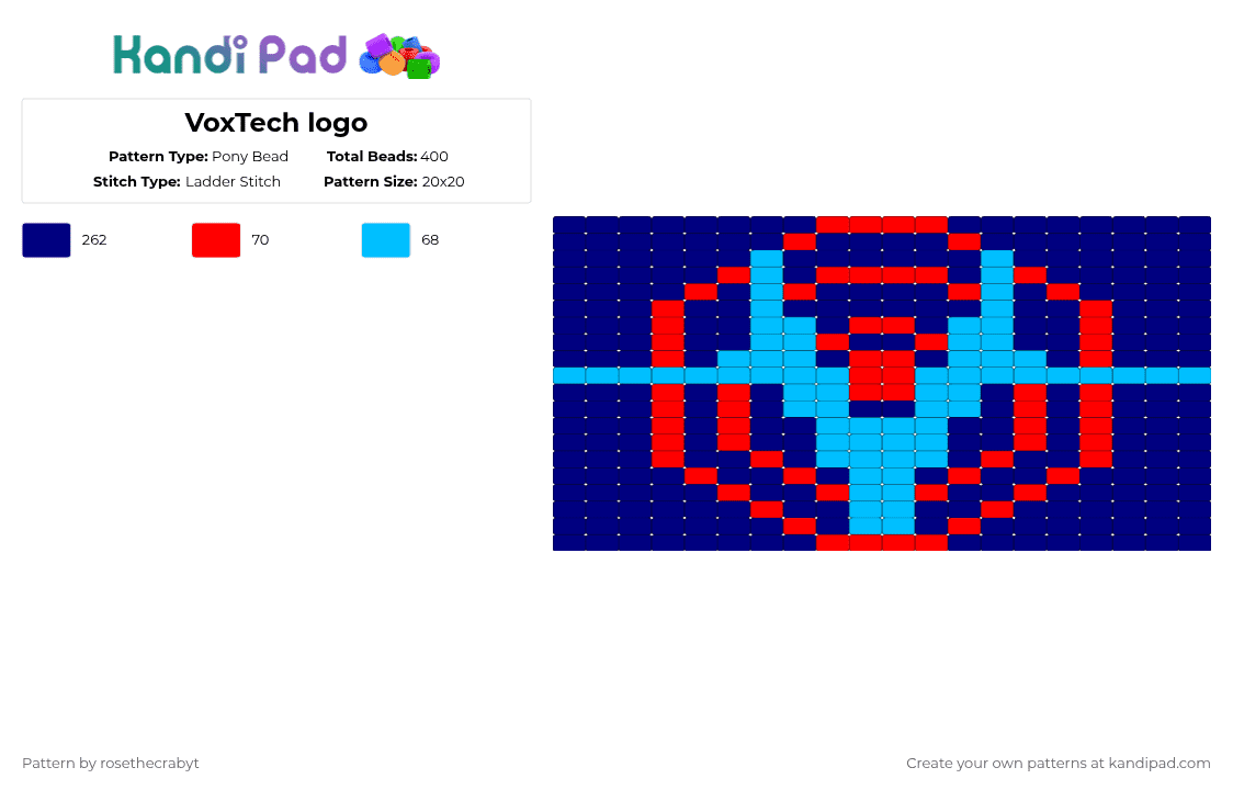 VoxTech logo Pony Bead Pattern - Kandi Pad | Kandi Patterns, Fuse Bead ...
