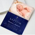 Baptism Boy Elegant Royal Blue Watercolor Invitation | Zazzle