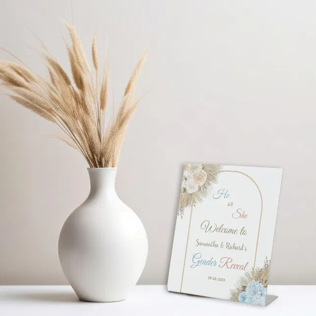 Pampas Grass Boho Gender Reveal Welcome Pedestal Sign | Zazzle