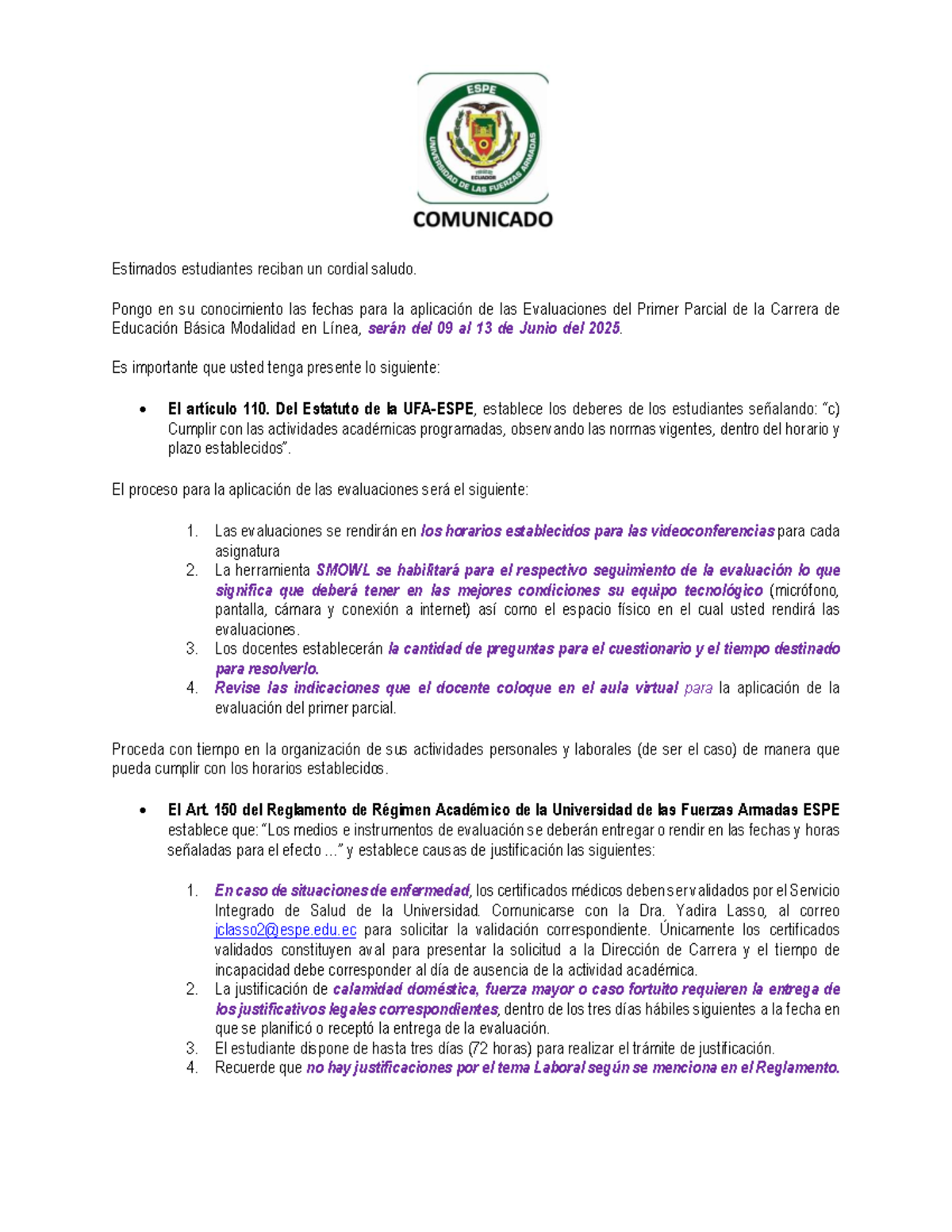 LEBV Comunicado Importante sobre Evaluaciones Primer Parcial 2025 - Studocu