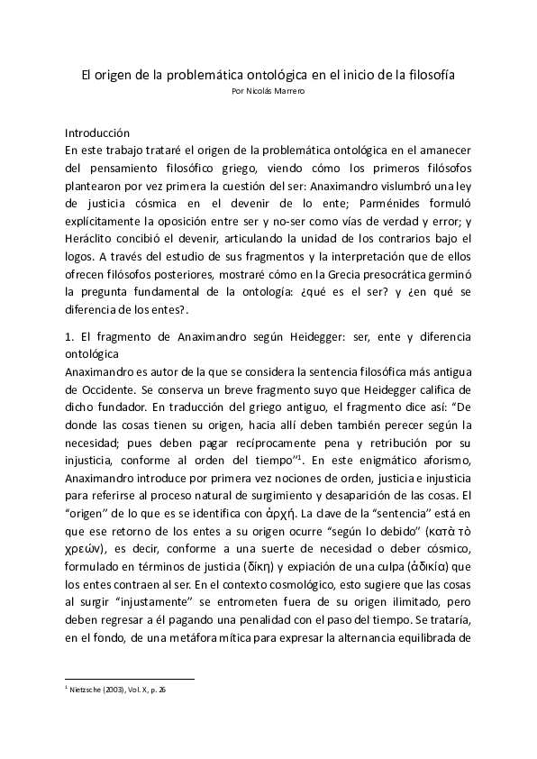 (PDF) El origen de la problemática ontológica en el inicio de la filosofía