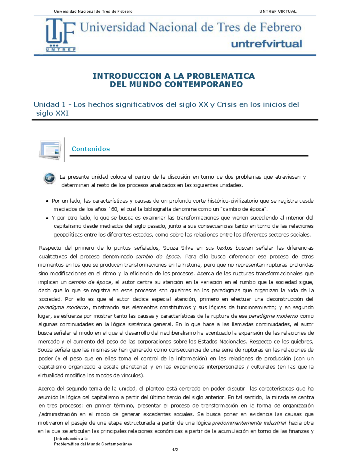 Unidad 1 Intro Problematica del Mundo Conte - INTR ODU CCION A L A PR ...