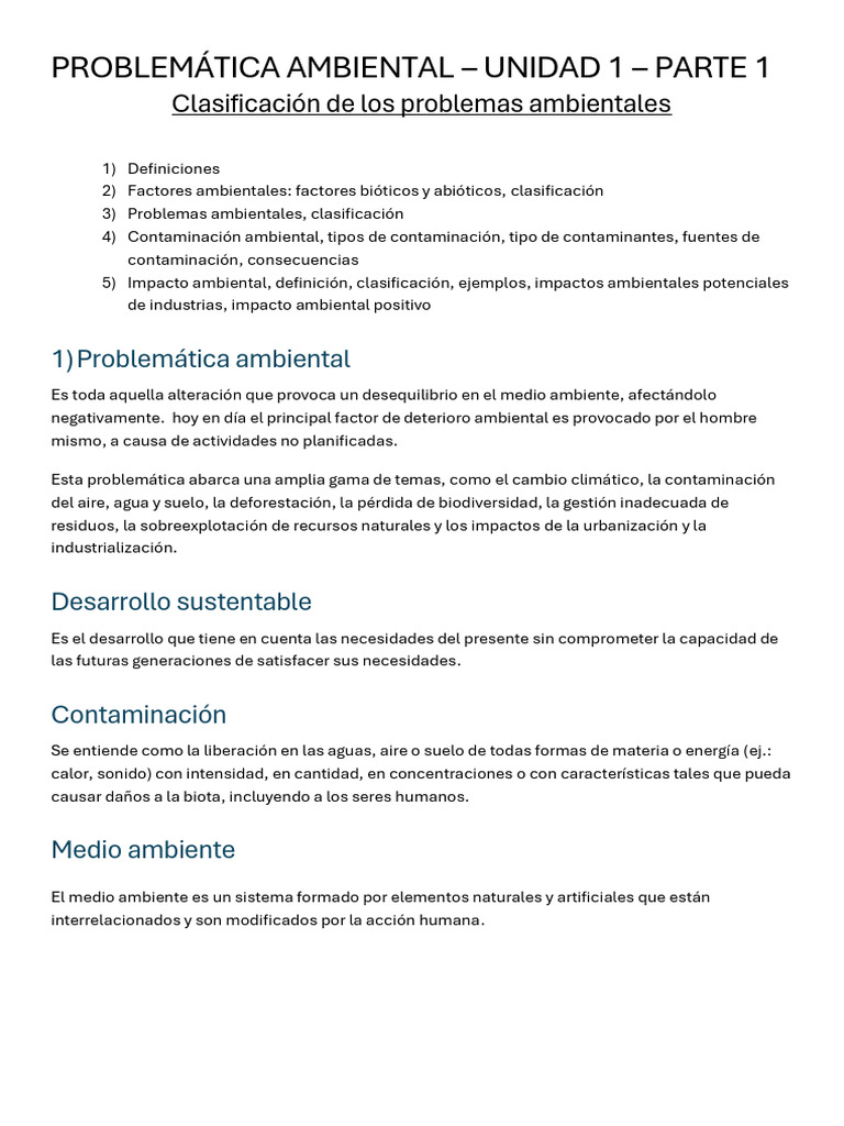 PROBLEMATICA AMBIENTAL - UNIDAD 1- PARTE 1 | PDF | Contaminación ...
