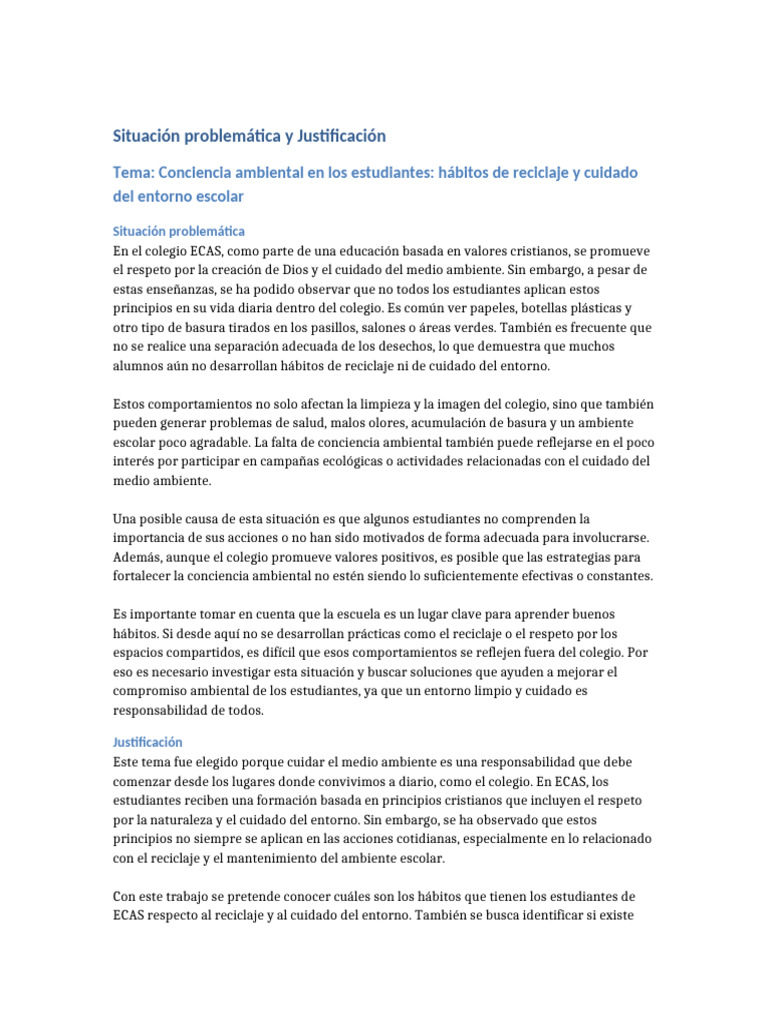 Situacion Problematica y Justificacion ECAS | PDF | Residuos | Entorno ...