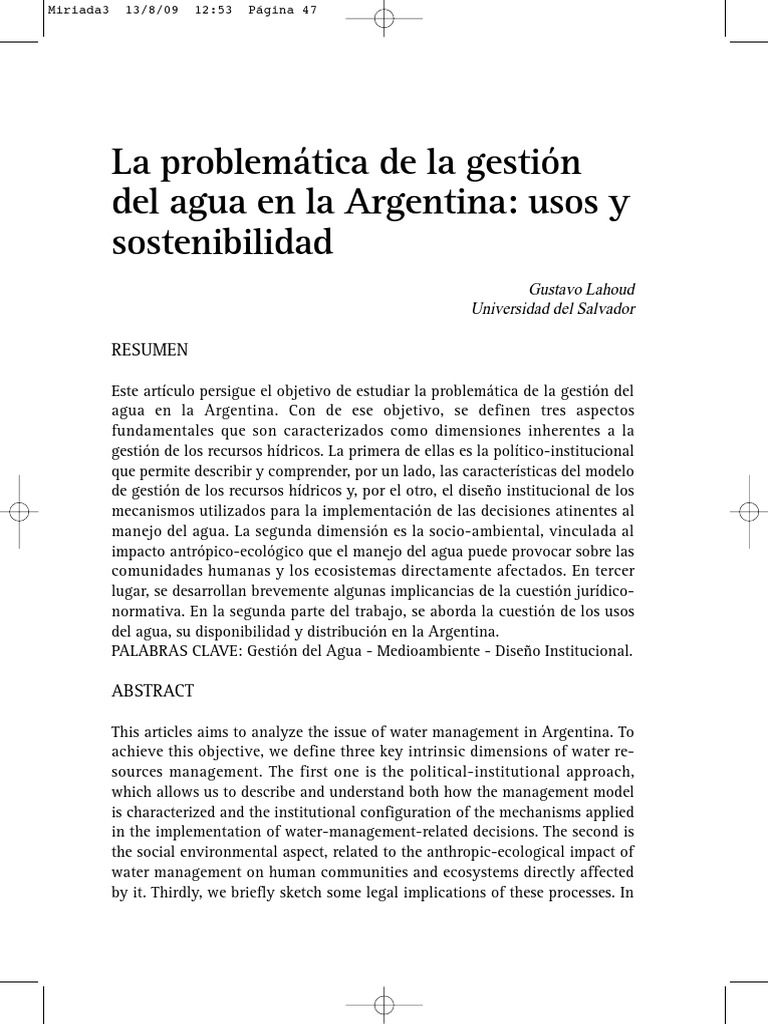 La Problematica de La Gestion Del Agua en Argenina - Usos y ...