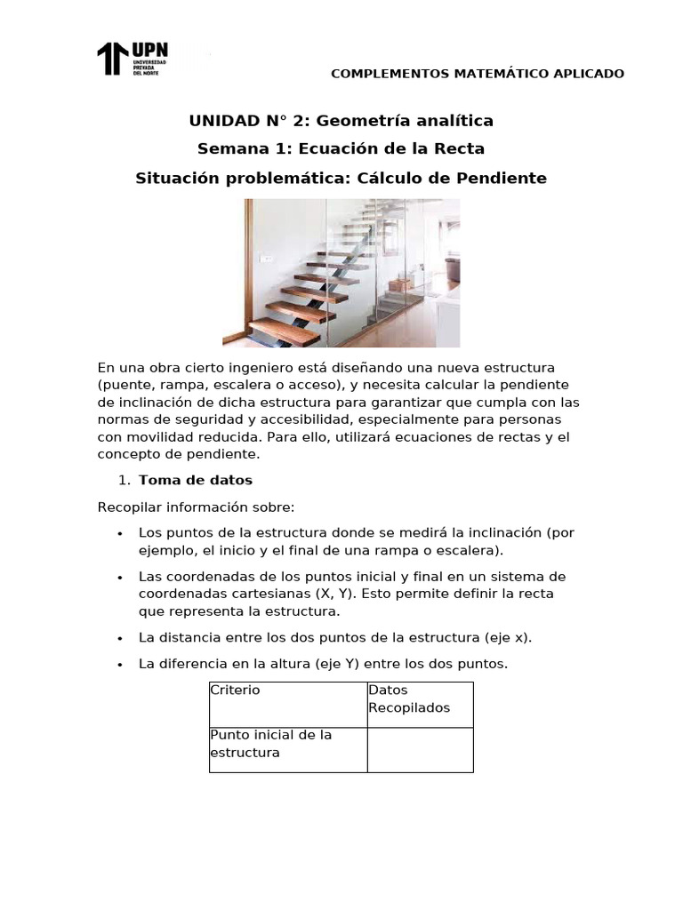 Situación Problemática - Semana 2 | PDF | Pendiente | Línea (geometría)