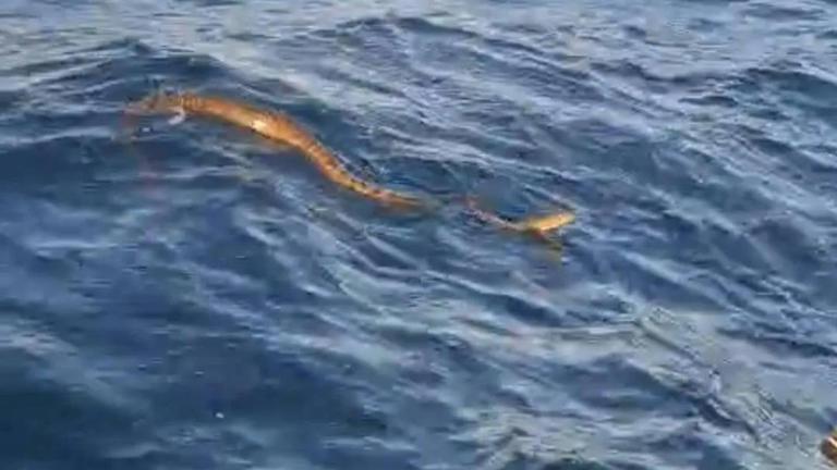 Passing fishermen rescue python stranded in sea