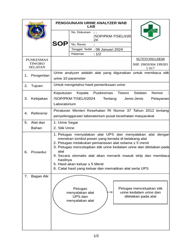 Sop Penggunaan Urine Analyzer Wab Lab Tisel | PDF | Teknologi & Rekayasa