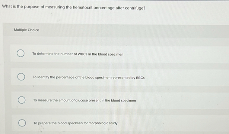 Solved: What is the purpose of measuring the hematocrit percentage ...