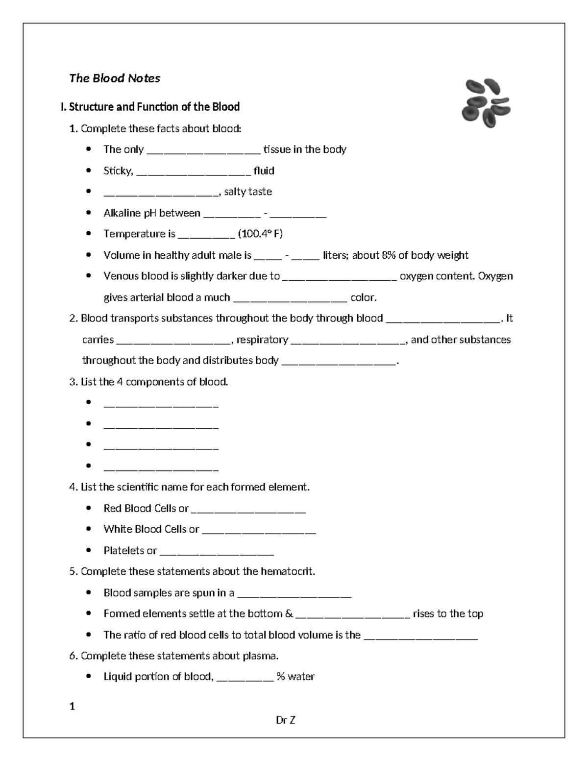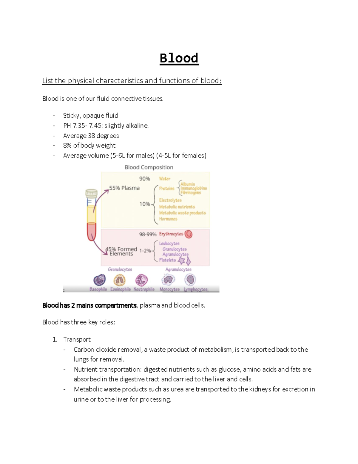 Blood Guided Notes: Structure, Function, and Hemostasis - Studocu