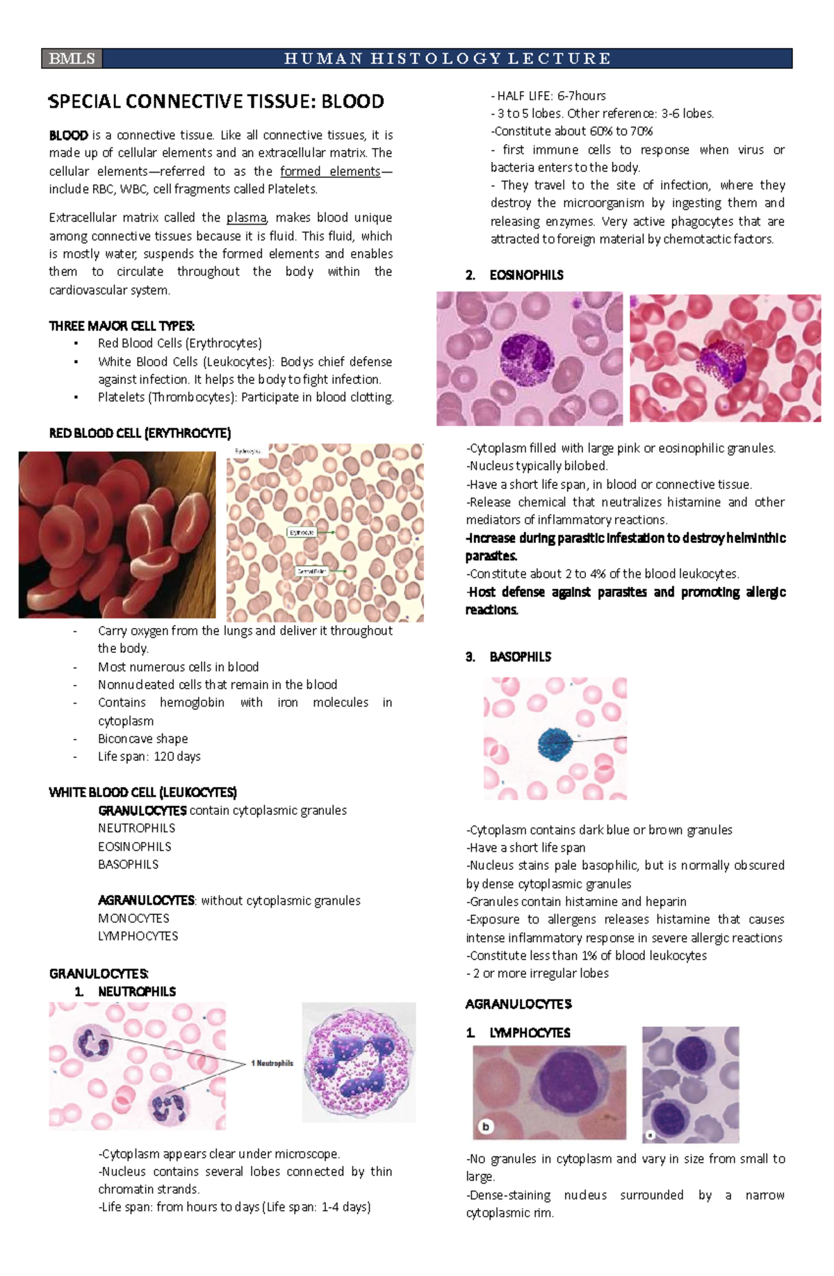 BMLS HUMAN HISTOLOGY LECTURE: Blood & Nervous Tissue Overview - Studocu