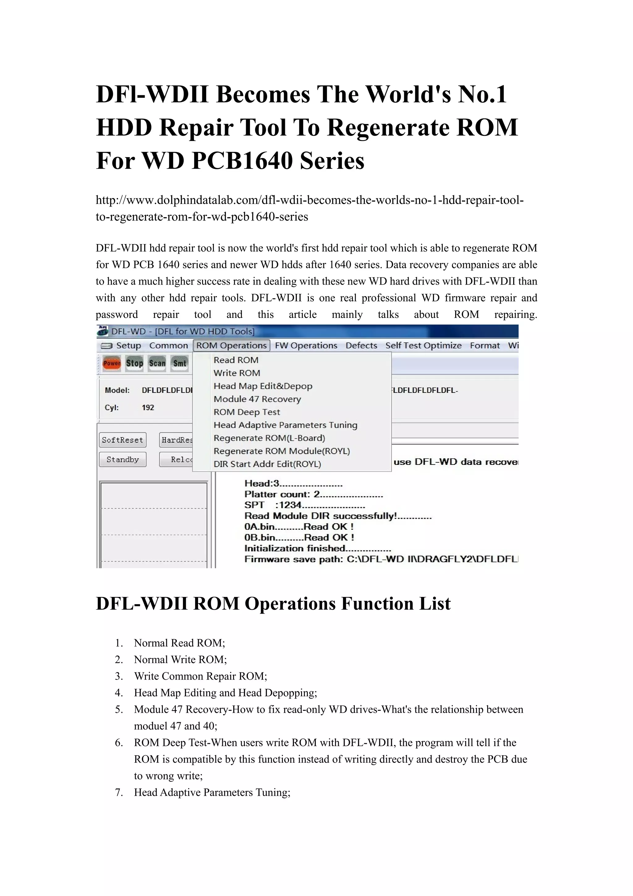 DFl-WDII Becomes The World's No.1 HDD Repair Tool To Regenerate ROM For ...