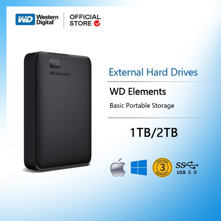 WD Elements 1TB/2TB Portable External Hard Drive USB 3.0 interface High ...