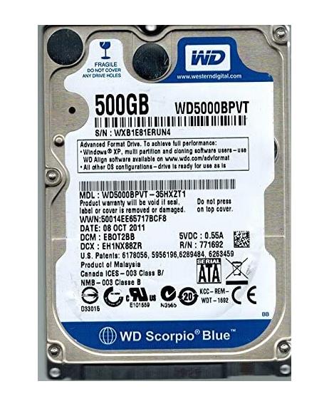 Western Digital 500GB SATA SCORPIO BLUE (WD5000BPVT) MOBILE Hard Drive ...