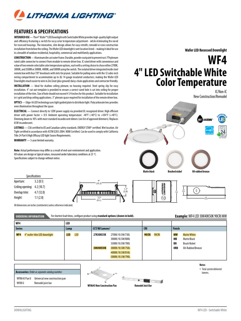 LITH WF4-REG-SWW5-90CRI-MW-M6 4-IN REGRESSED SWITCHABLE DOWNLIGHT ...