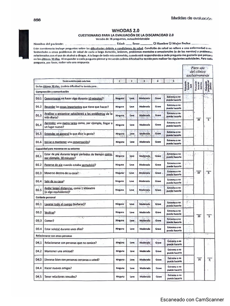 Evaluación de Discapacidad WHODAS 2.0 | PDF