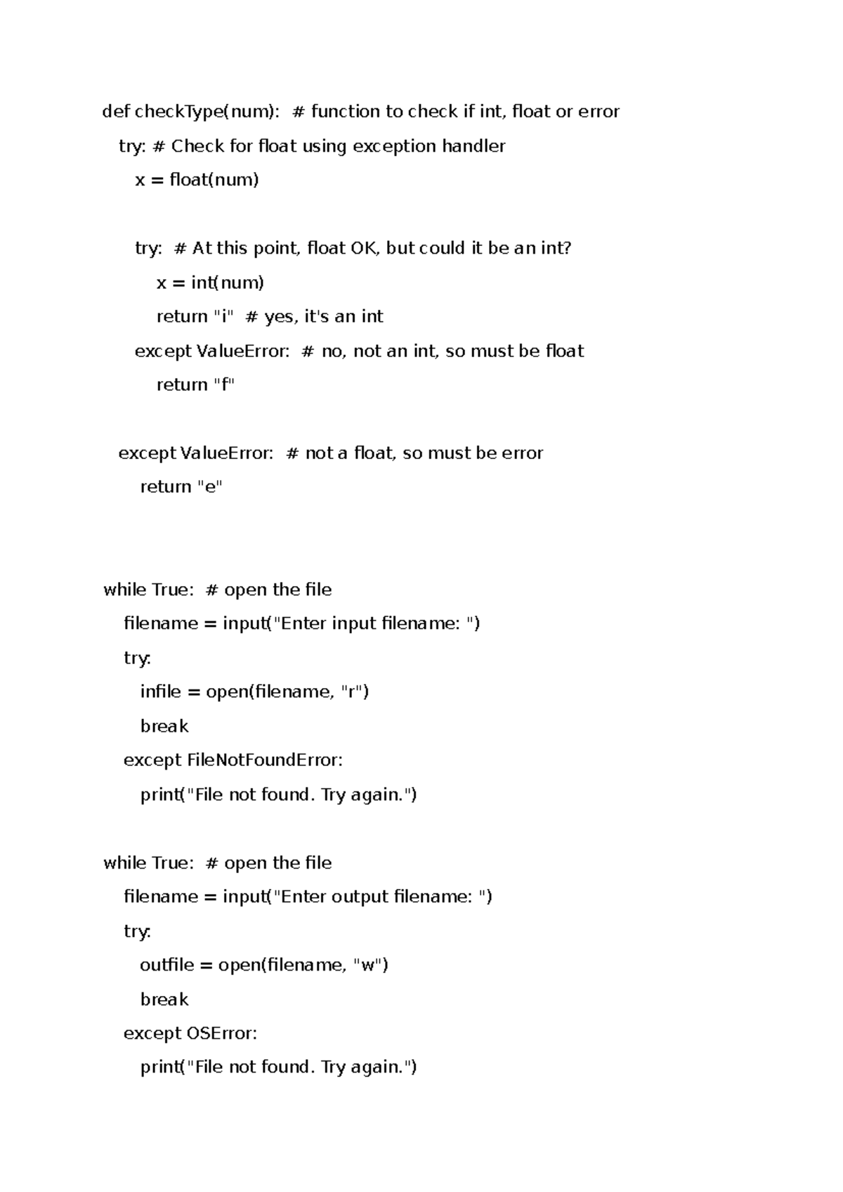 WIP MINI Project - Reading and saving files - def checkType(num ...