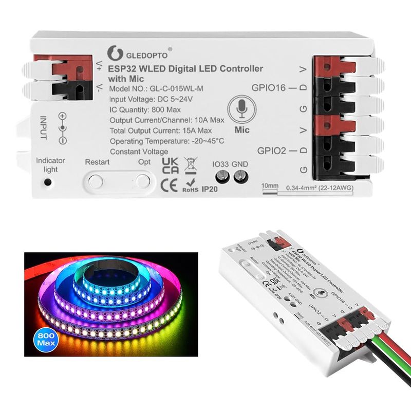 GLEDOPTO-ESP32-WLED-LED-Controller-With-Mic-DIY-Music-Dynamic-Modes-for ...