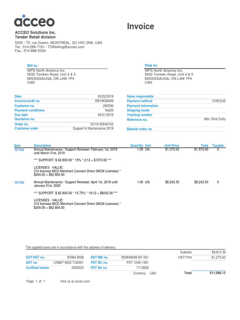 WPS NORTH AMERICA INC (Invoice 1) | PDF | Government Finances | Taxation