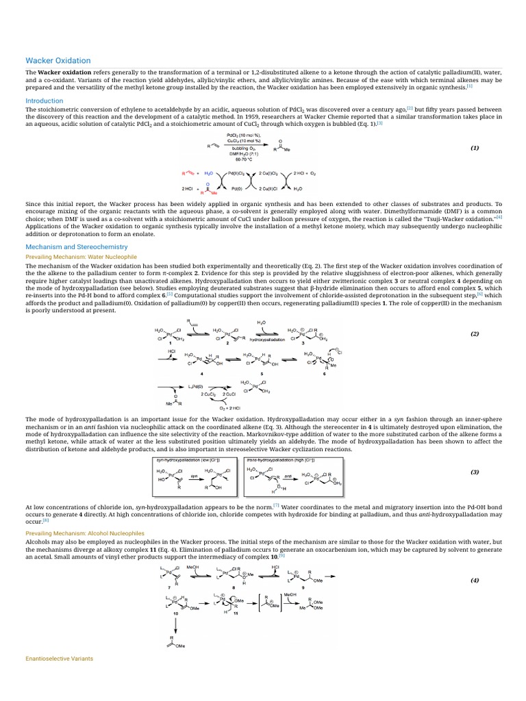 The Wacker Reaction and Related Alkene Oxidation Reactions | PDF ...