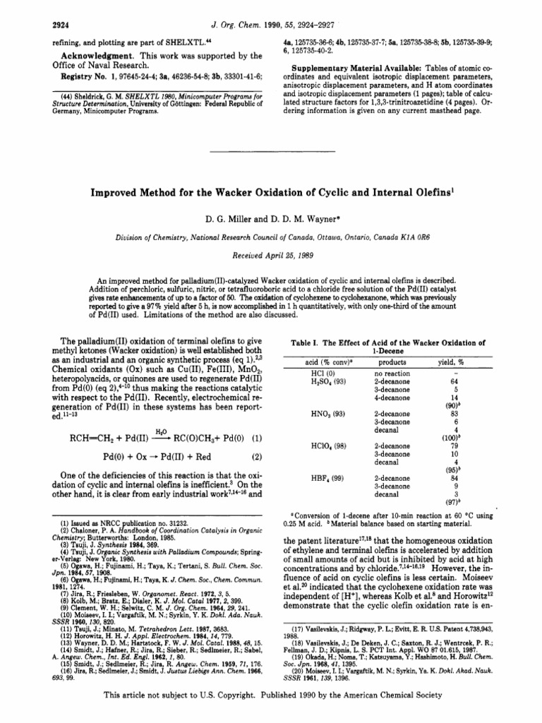 Improved Method For The Wacker Oxidation of Cyclic and Internal Olefins ...