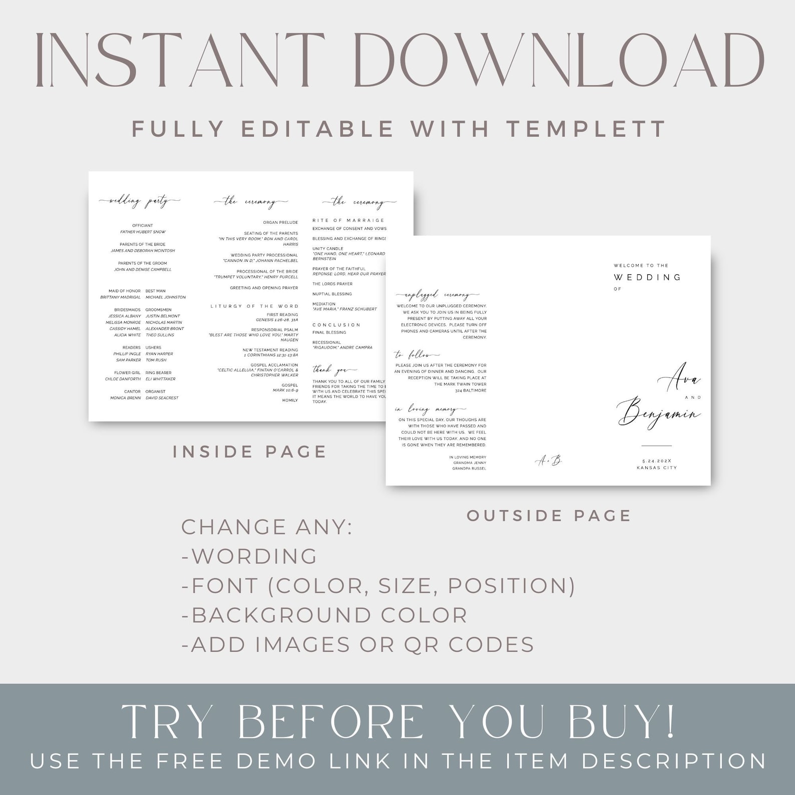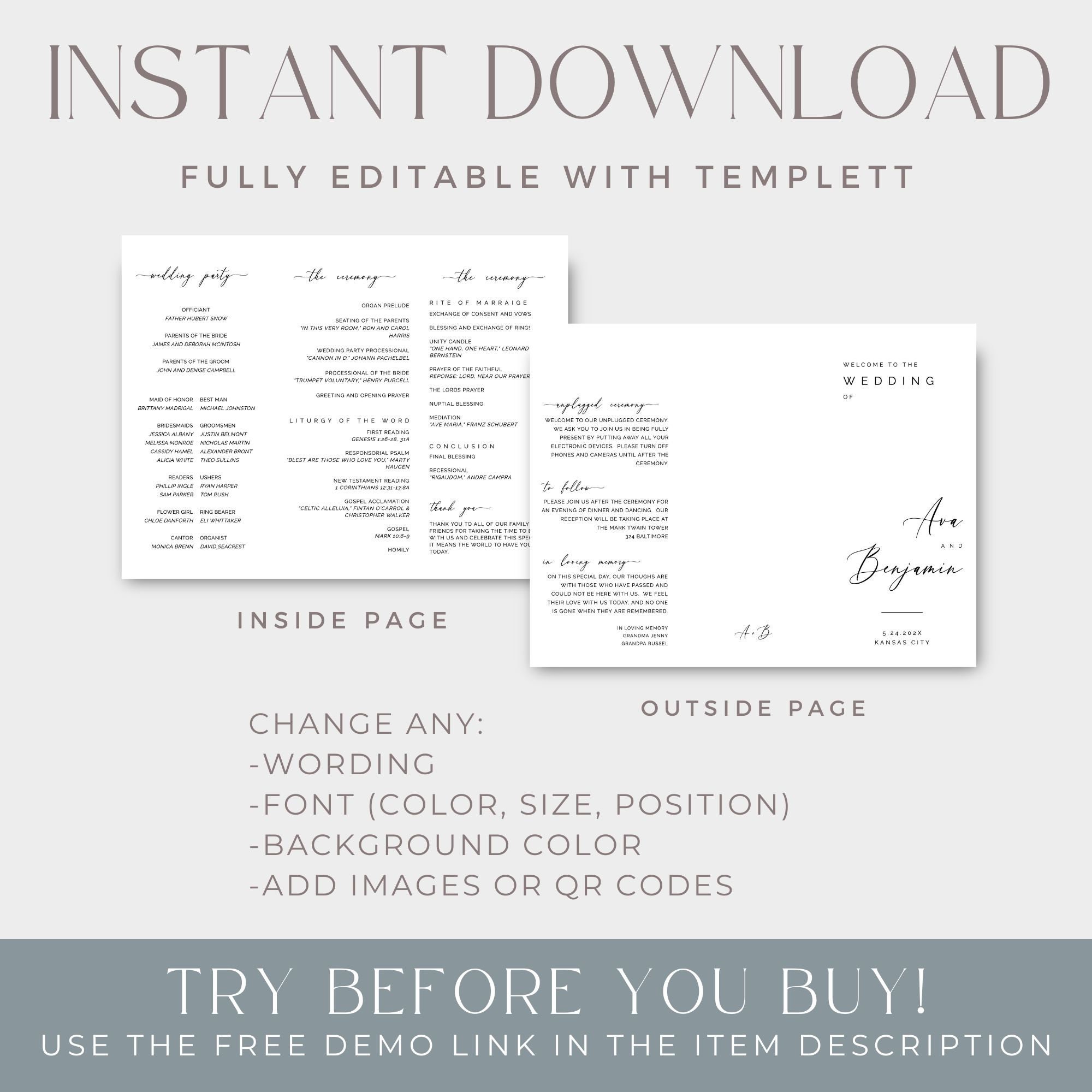 Folded and Flat Wedding Program, Editable Template, Wedding Program ...